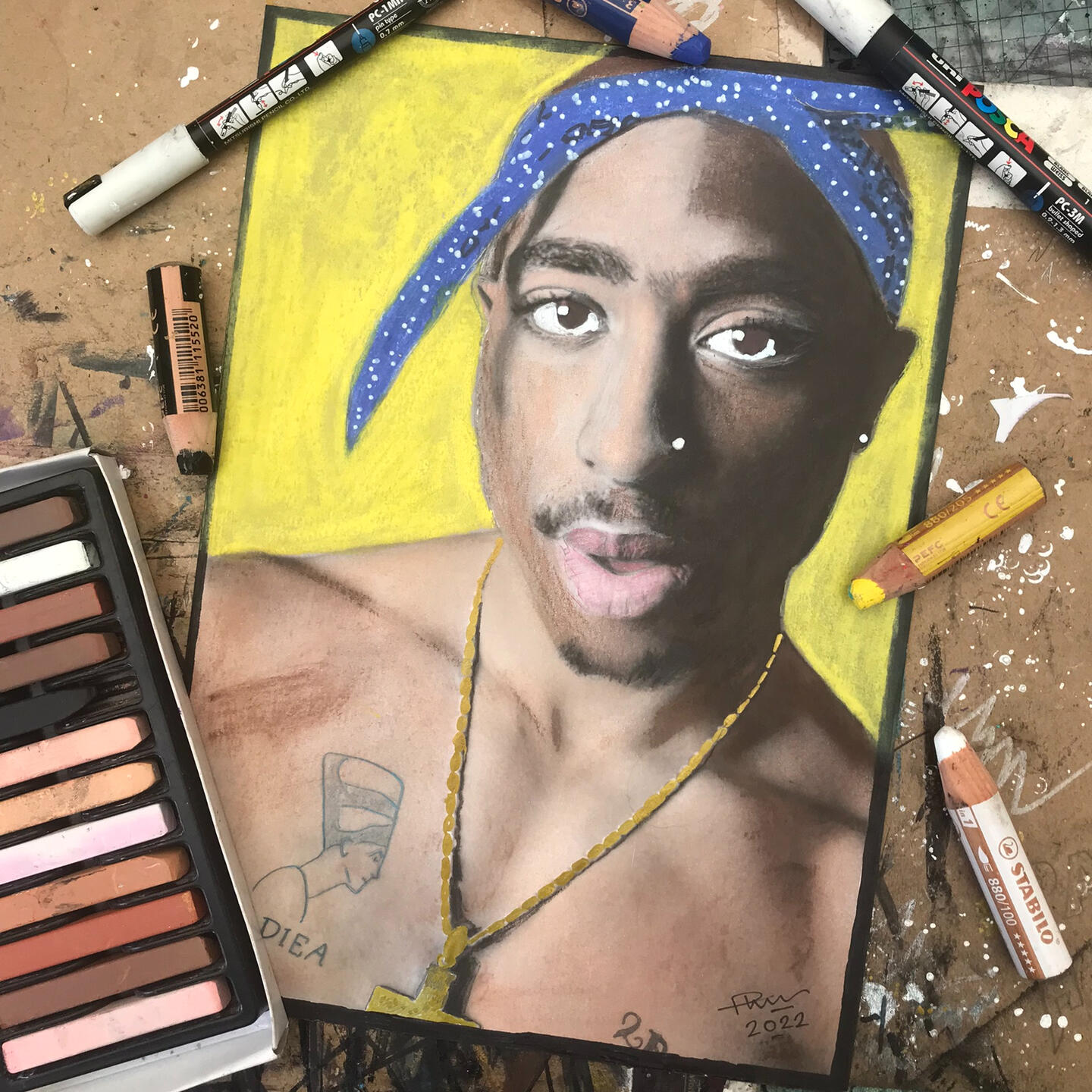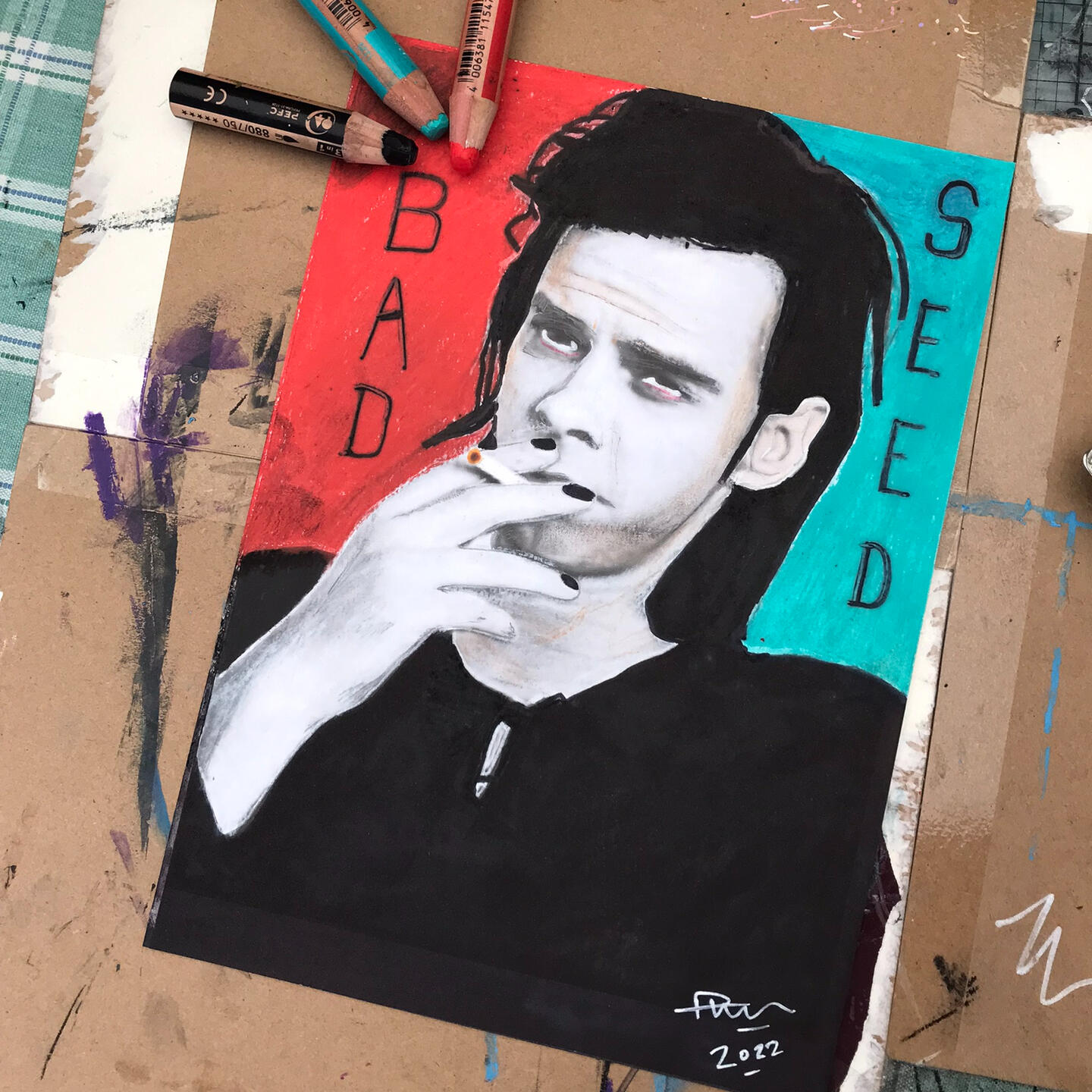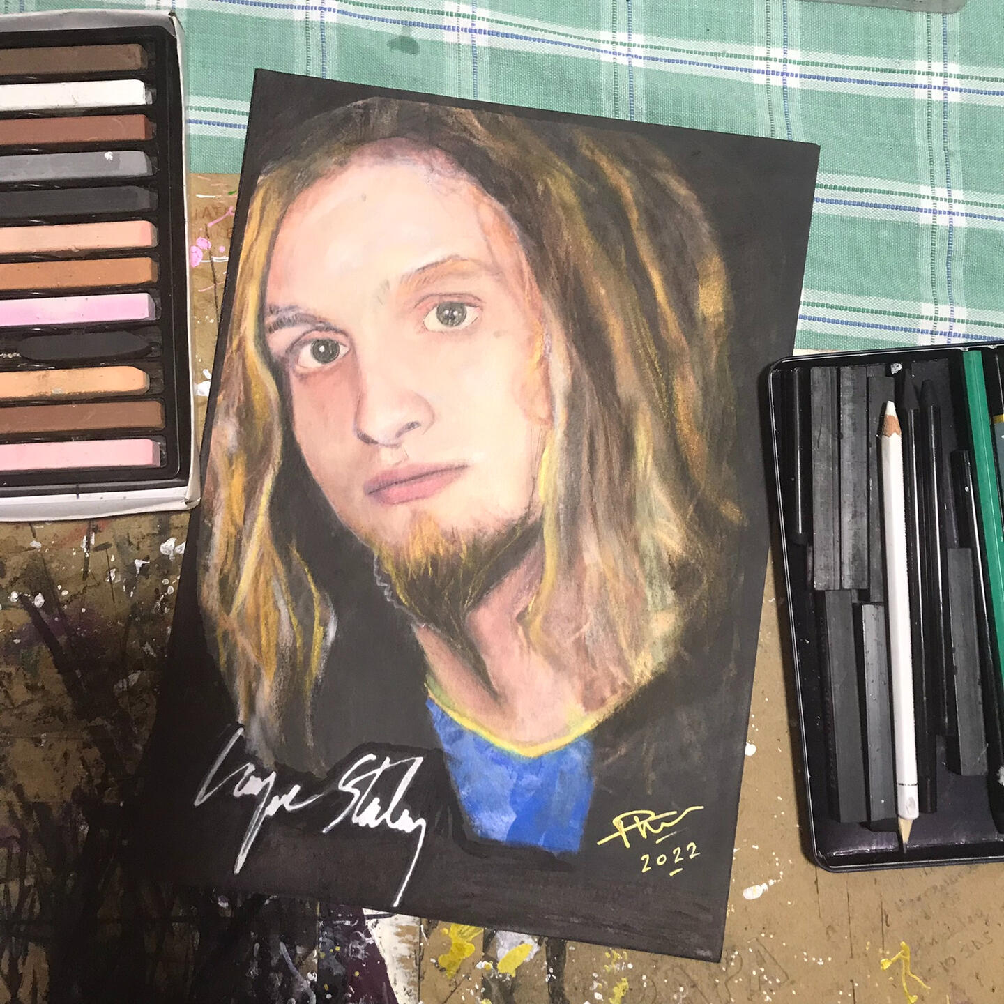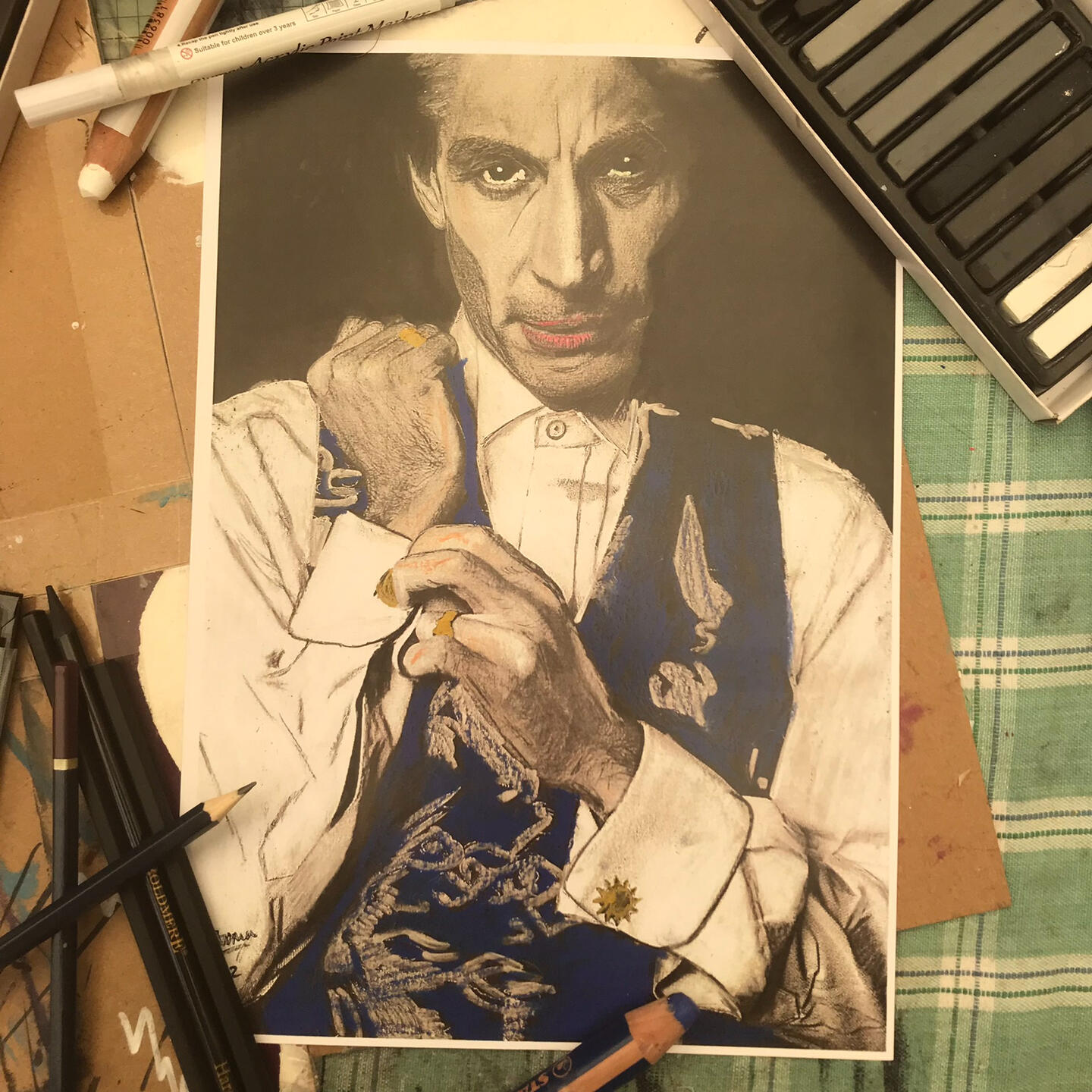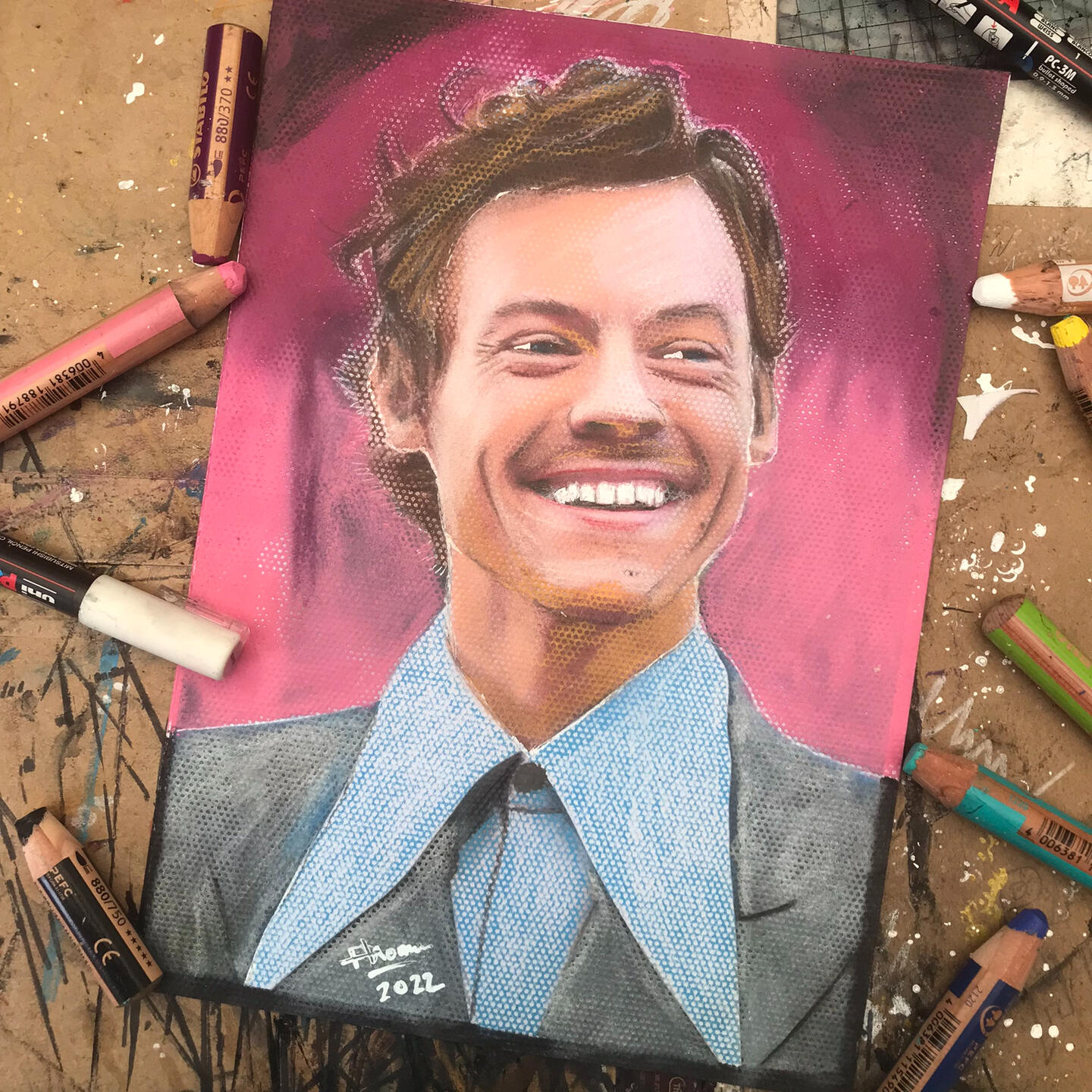 I’ve always been artistic, but started to really get into drawing in late 2021 as a way to help my mental health in my downtime. I soon began to get requests for copies of my pictures and had people suggesting more and more subjects to draw, so I decided to take it a little more seriously. Thus came Beardyface Art!My art always starts with a source photograph which I take inspiration from and then put my own twist on with the careful use of light, shade, and striking colour. I use a range of materials, including charcoal, pencil, pen, chalk pastel, wax crayon, and acrylic paint to achieve the bold style that has become my signature.
