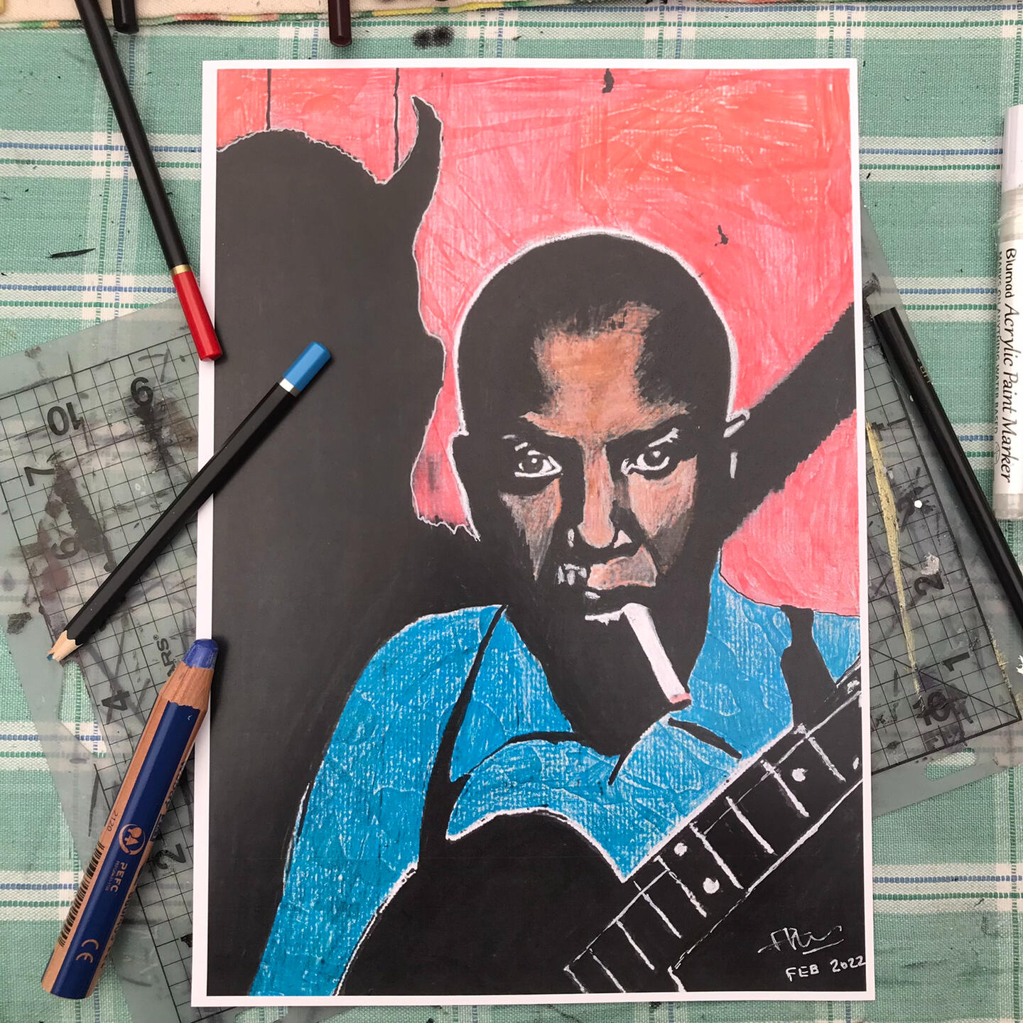 A beardy faced, two wheel riding, music loving chap making portrait art of people who interest me. Expect rock, metal, blues, and folk musicians, as well as sportspeople, comedians, and pop culture icons/characters.Thanks for your interest and support! You can check out my whole portfolio here, and follow me on socials for regular updates. Most of my pieces are available for purchase - either originals or prints - and I take commissions too, so if you like what you see please do get in touch.
